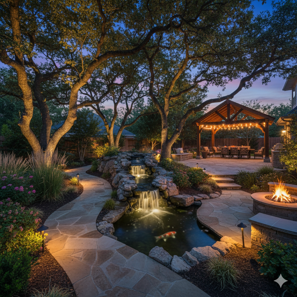 • Water Features – Custom ponds, streams, and waterfalls that add beauty and tranquility